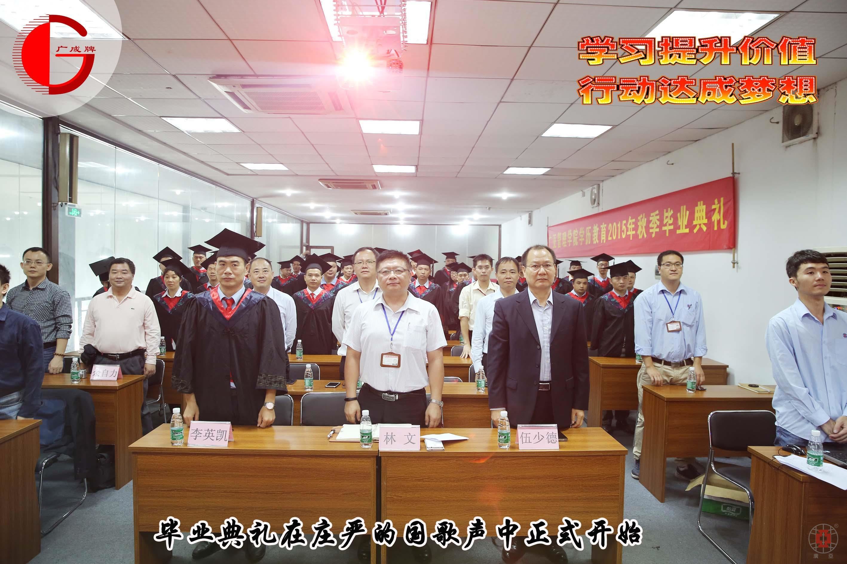 毕业典礼在庄严的国歌声中正式开始。伍少德校长首先代表学校向圆满完成学业的毕业生表示诚挚的祝贺!向所有为学员的学习、成长付出辛勤劳动的教职、教务人员致以崇高的敬意!他指出,毕业只是一个阶段的结束,希望学员们志存高远、坚持不懈,保持终身学习和感恩的心态,奋发有为。同时,欢迎学员们与学校保持联系,收获成功时,不忘向学校报喜,遇到困难时,学校也将不遗余力地提供支持与帮助。
