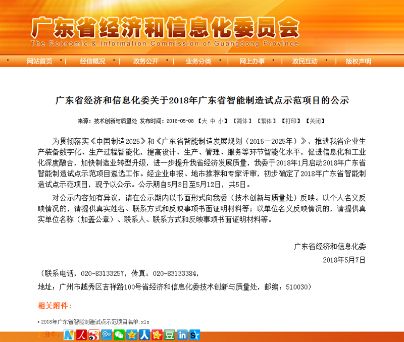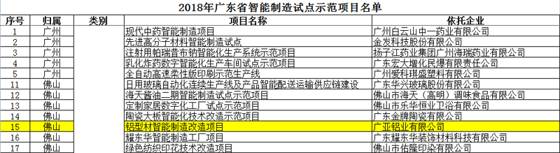 喜讯:ballbet贝博铝业入选2018年广东省智能制造试点示范项目企业