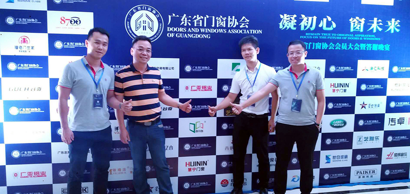 在年会主背景墙前留影 据资料显示,中国家装门窗市场每年的市场份额达1500亿,而每年还在以20、30%以上速度增长,有更多的其他行业在逐渐进军门窗行业。协会曾奎会长在会上表示:“广东是中国门窗发源地,广东门窗中国智造,在我国是‘品质保证’与‘实力担当’的代名词。希望广东门窗人齐心协力共同努力,将广东门窗品牌立足中国走向世界。”
