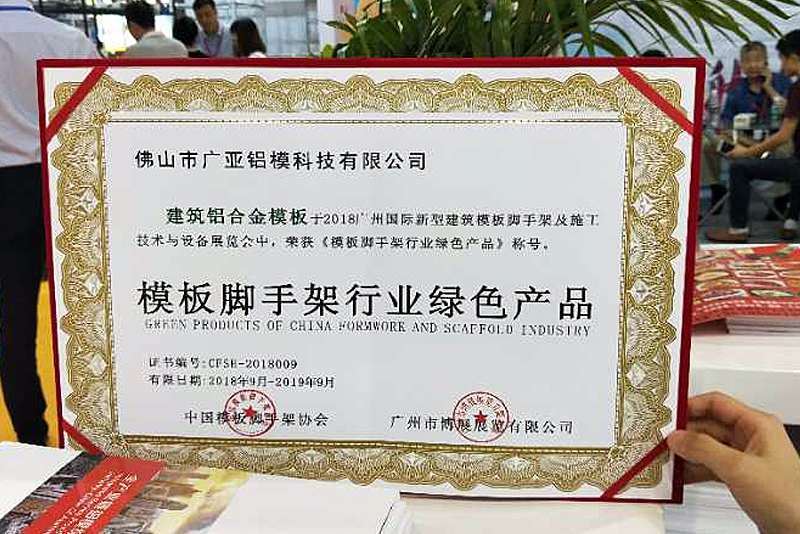 ballbet贝博铝模荣获中国模板脚手架行业绿色产品证书