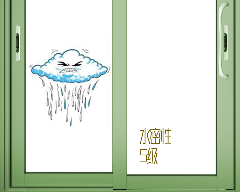 就水密性而言,本系统采用了多道密封结构形式。在框上设计整圈密封胶条,两扇勾企处包括两扇勾企内侧均设计了多道密封胶条阻隔雨水,型材腔体排水经过合理设计,将水排向室外侧,从而确保了很好的“避水”效果。