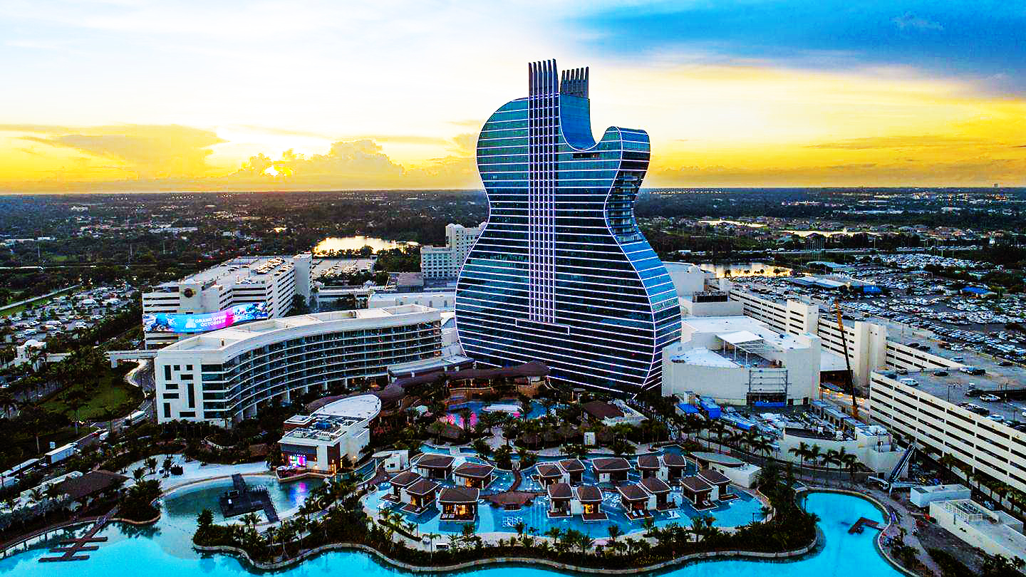 酒店位于佛罗里达州海滨城市好莱坞,已成为当地标志性建筑。酒店高约150米,拥有1271间豪华客房和套房,其中638间客房位于“吉他”的主音箱内。酒店总造价高达15亿美金。