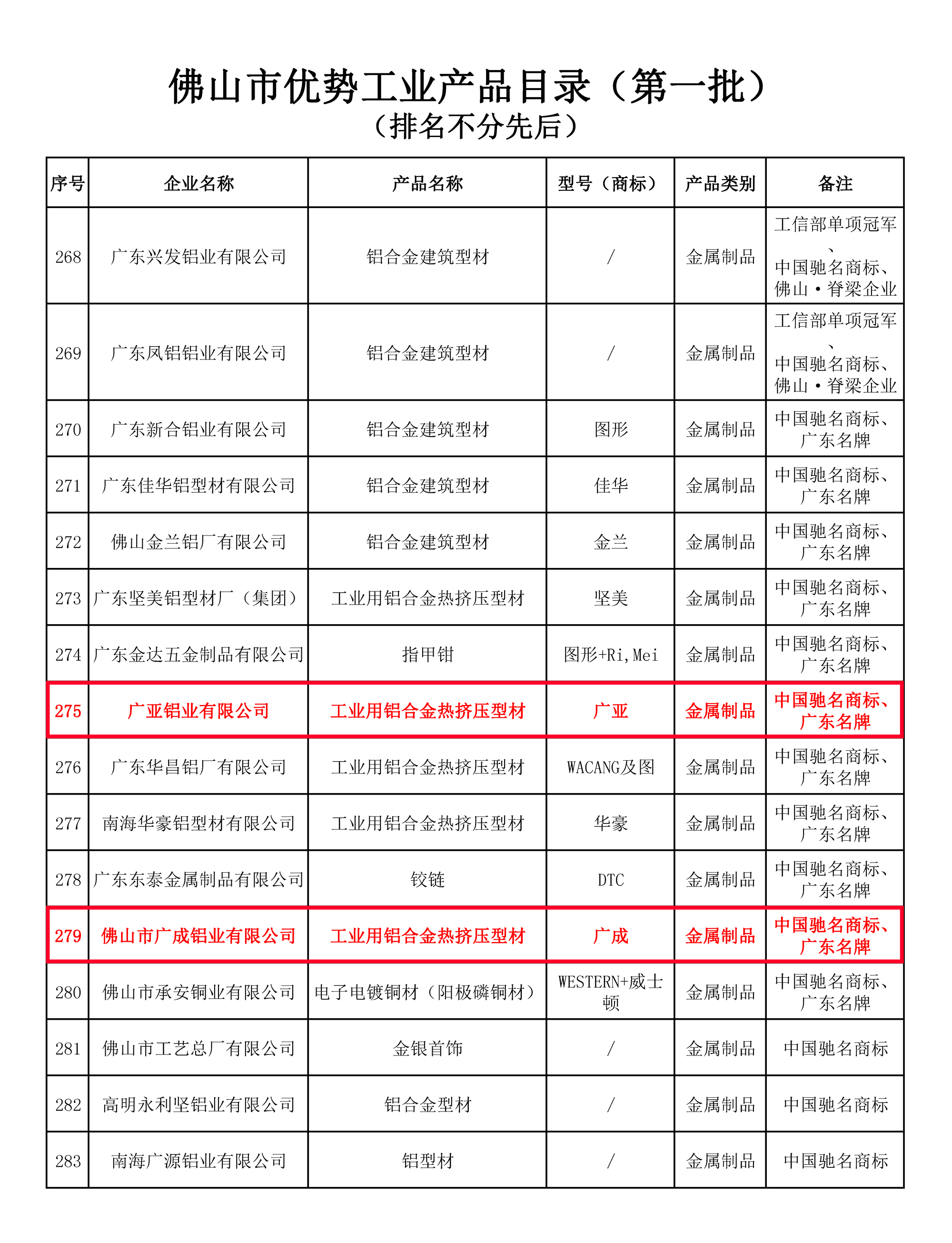 为提升佛山市优势工业产品的知名度和市场竞争力,推动制造业高质量发展,市工信局梳理了一批曾获得国家和省级荣誉的企业产品作为佛山市优势工业产品,形成《佛山市优势工业产品目录》,近日正式对外发布。本次共有571家企业产品入选,ballbet贝博铝业和广成铝业产品凭借曾获“中国驰名商标”、“广东名牌”的雄厚实力,双双入选!