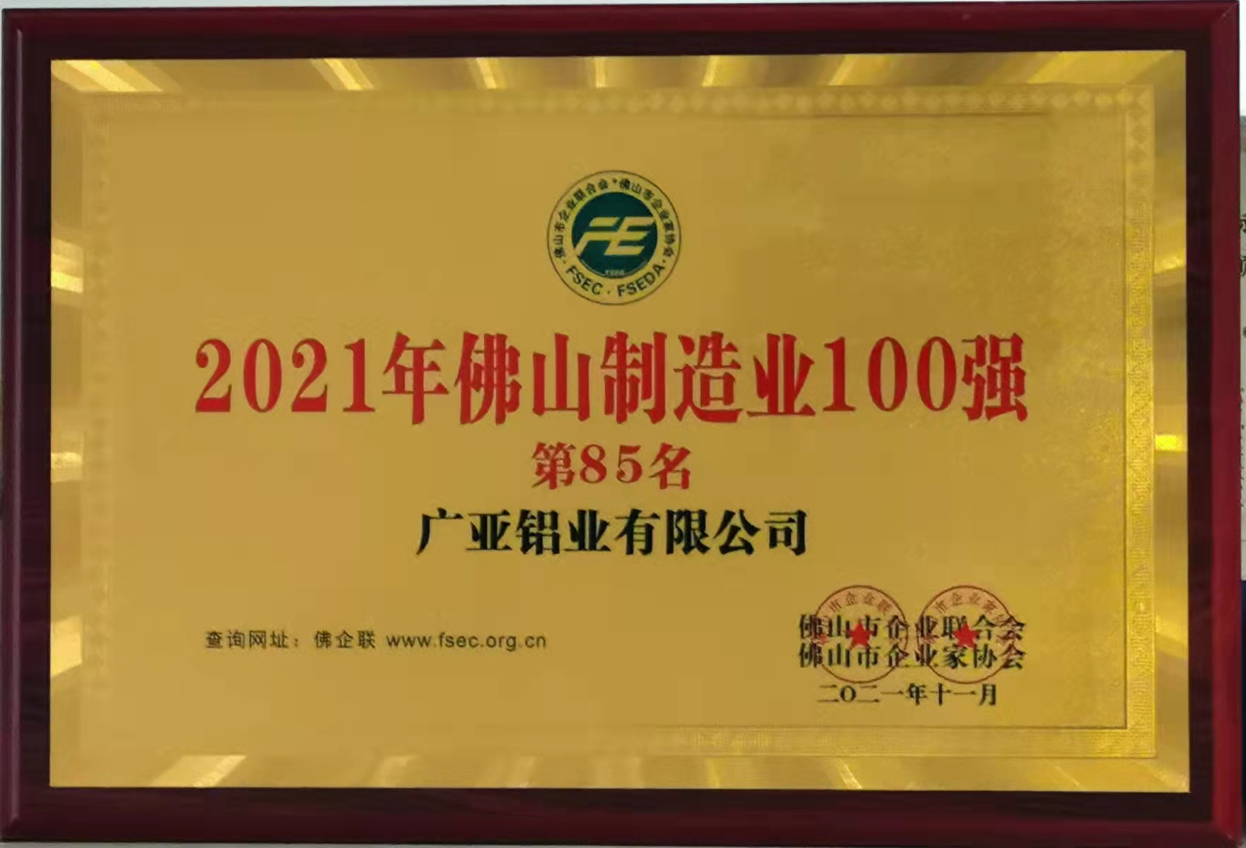 近日,由佛山市企业联合会、佛山市企业家协会联合发布的《佛山制造业100强》榜单出炉,作为中国铝材行业的领军者,ballbet贝博铝业凭借雄厚的品牌综合实力荣耀登榜。