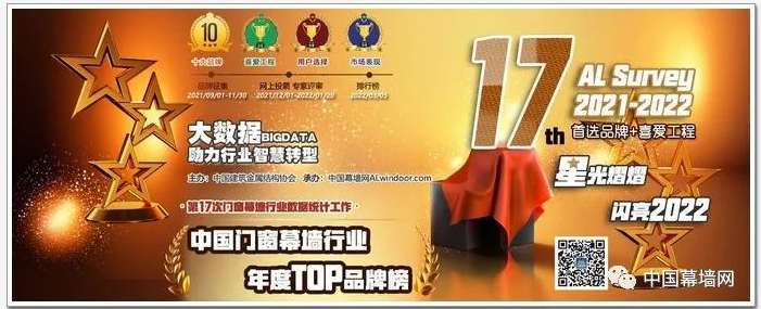2022年3月10日,由中国建筑金属结构协会主办,中国幕墙网承办的“2021-2022年度第十七届AL-Survey门窗幕墙行业读者调查暨‘首选品牌+年度工程’评选活动”