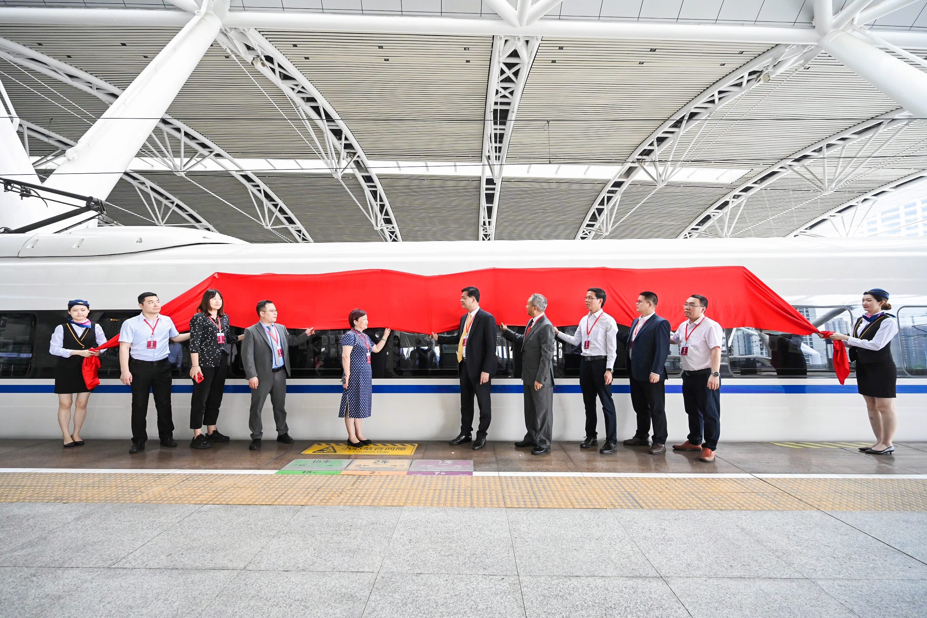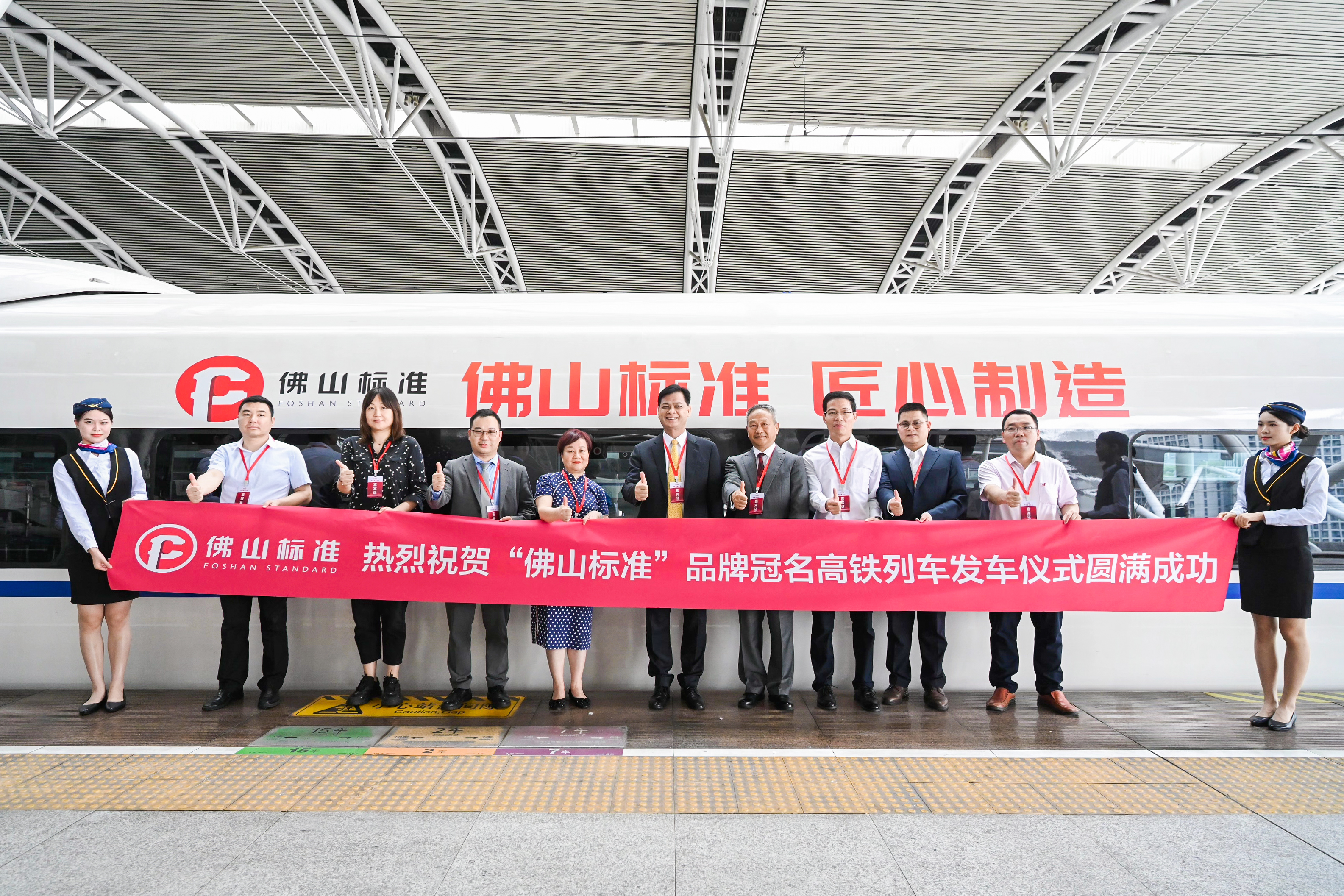 4月17日,由佛山市市场监督管理局开展的「佛山标准」品牌高铁冠名列车发车仪式在广州南站隆重举行,作为佛山标准产品企业,ballbet贝博铝业受邀参与本次高铁发车仪式,企业标识刊登于该专列内。佛山市市场监督管理局局长陈浩斌、各区市场监督管理局负责人,知识城ballbet贝博控股集团副总经理曹星以及「佛山标准」首批受邀企业代表共同参与活动。